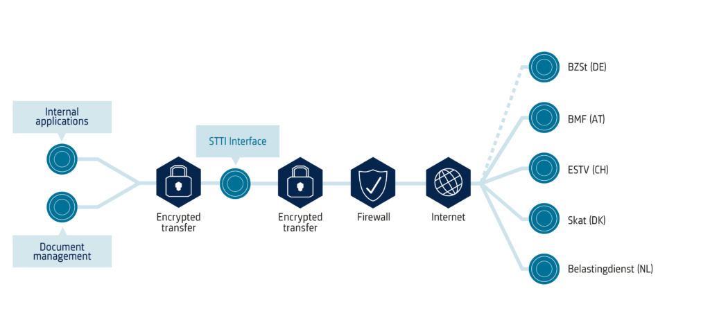 STTI ermöglicht die sichere Übertragung von steuerrelevanten Informationen und Begleitdokumenten zwischen internen Systemen von Banken, Steuerbehörden oder Beantragungsstellen. Egal, welches Verfahren gefordert ist, die Schnittstelle unterstützt die elektronische Übermittlung von Formularen an die Beantragungsstelle oder transferiert Daten in das erforderliche Webformular.